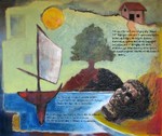 2005ocean cradle: gemengde techniek op karton. IMMRAMA series. geinspireerd op Ierse helden gedichten.